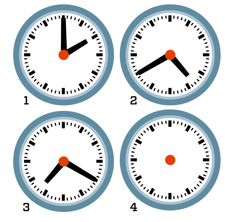 Hvilket klokkeslett skal den fjerde klokka vise?